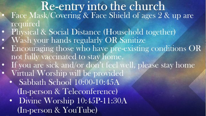 July 3rd, 2021 We will resume in-person Worship. Please notice our times of adjustments and requirements.