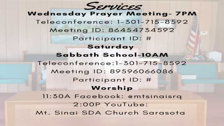 Change in Teleconference Lines for Prayer Meeting (Wed 7pm) and Sabbath School (Sat 10am). [revised 2/23/2021]